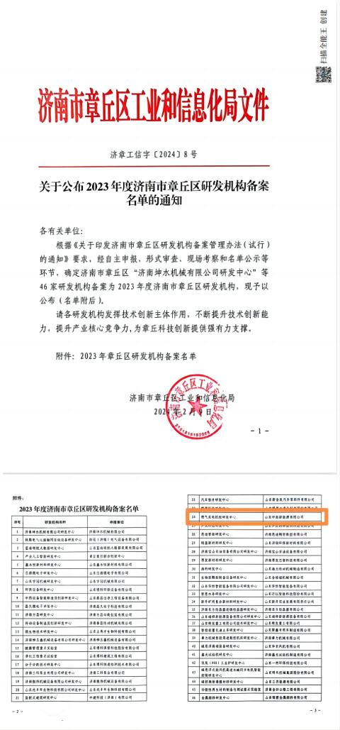 熱烈祝賀山東中拓新能源有限公司榮獲2023年度章丘區研發機構備案企業